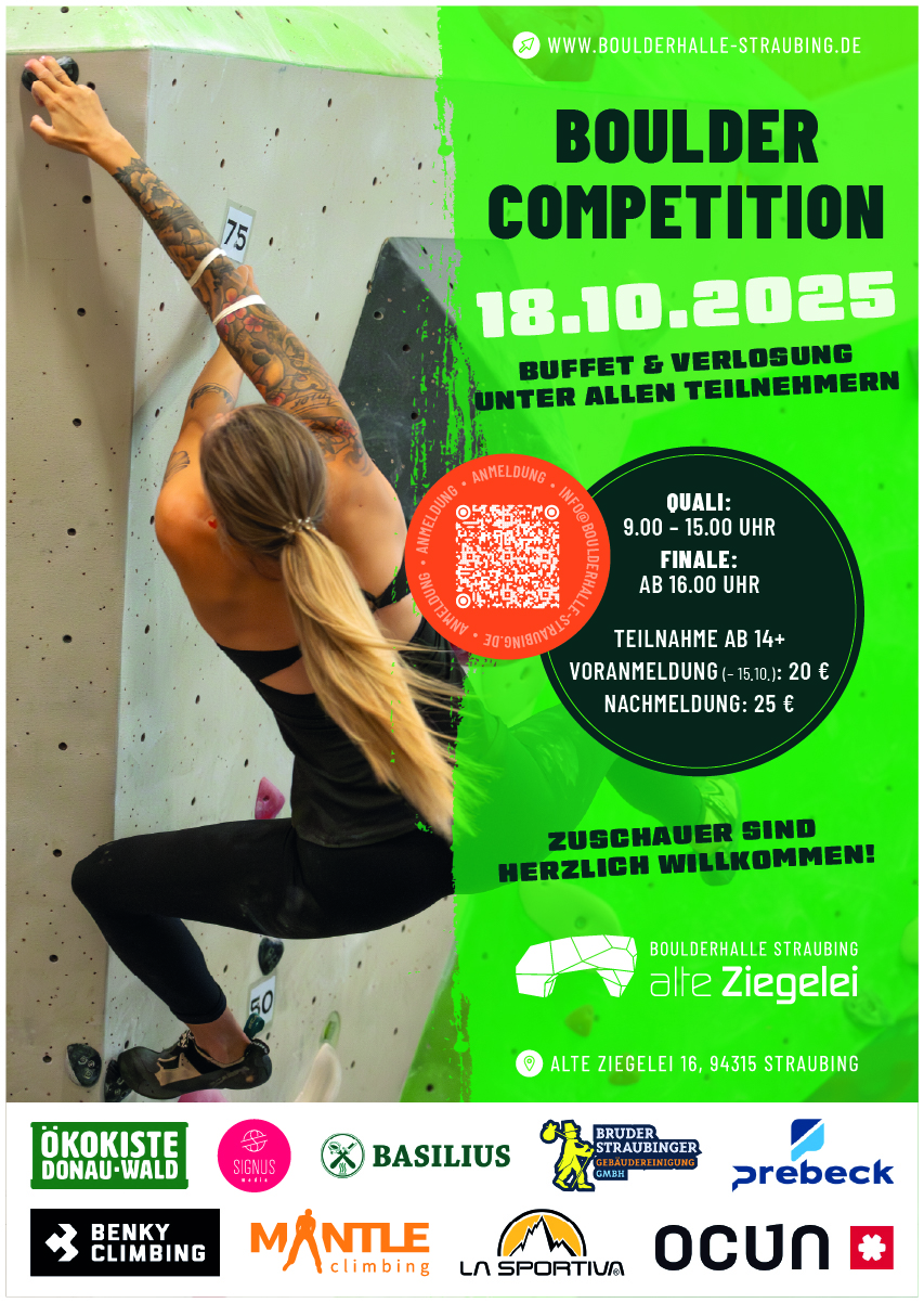 Am 18.11.25 von 17.00 Uhr bis 21.00 Uhr in der Boulderhalle in Straubing.